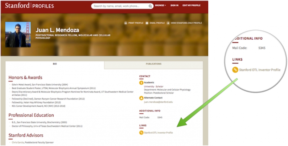 FeaturedIt's easy for Stanford researchers to add a link from your Stanford Profile "Links" to your to your Visible Legacy Navigator Page with a few simple steps. Most university profile systems have a similar capability.