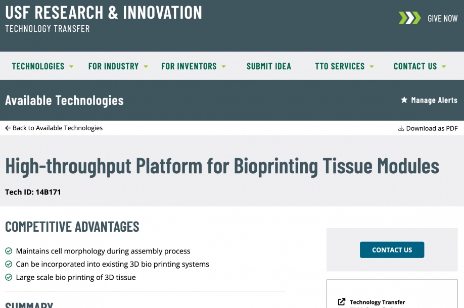 FeaturedA new portal at the University of South Florida Technology Transfer Office is improving accessibility for USF inventors and the general public, including companies interested in licensing inventions.
