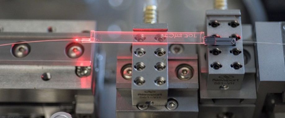 This nonlinear optical wave guide converts the wavelength of a single-photon signal to a common telecom wavelength. (Photo: L.A. Cicero/Stanford News) This nonlinear optical wave guide converts the wavelength of a single-photon signal to a common telecom wavelength. (Photo: L.A. Cicero/Stanford News)
