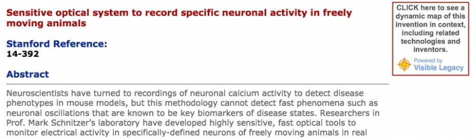 In addition to widgets, Visible Legacy is developing a sidebar button that may be added to Office of Technology Licensing technology disclosure pages. This post demonstrates a fast prototype to show an example layout that might be useful for licensing offices to add a colorful element to their pages linking to an interactive map of the context of the invention.