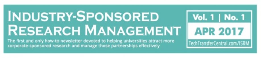 The ISRM Newsletter is a monthly newsletter by subscription devoted to the unique opportunities and challenges universities face in their industry-sponsored research efforts. The April edition covers topics such as industry collaborations with universities, co-development models, improving lab websites to be better platforms for communication, university technology licensing options, and integrating industry-sponsored research and technology transfer