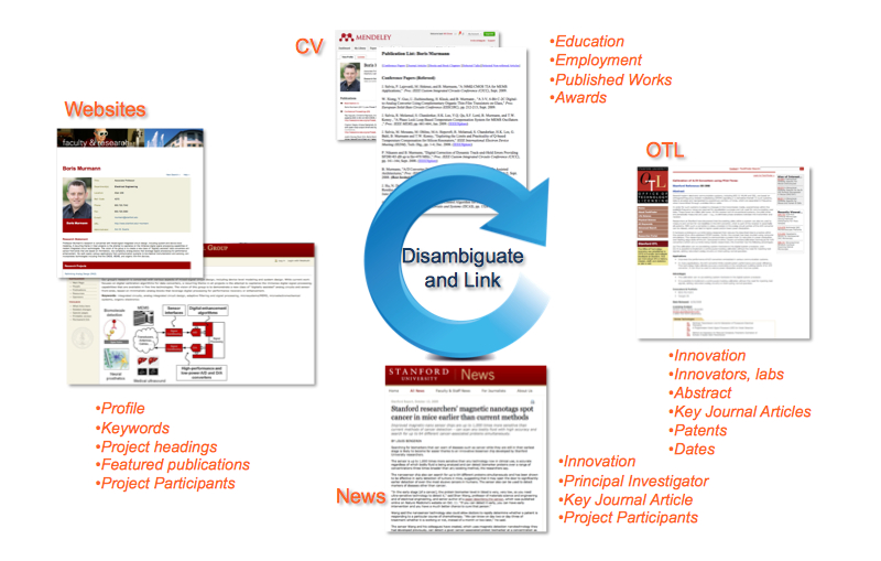 The Visible Legacy knowledge map is created automatically from public resources such as curriculum vitae (CV), websites, published works and news feeds. The information is presented with interactive visualizations as timelines, thumbnails, tag clouds, and a map of relationships. The map is explored with the interactive website enabling users to navigate the connections, moving from people to projects through the Visible Legacy network of information ("the graph"). Wankel Engine Visible Legacy's sophisticated algorithms disambiguate and link information: creating tags, extracting dates and keywords, finding connections, and "snapping information to the grid" of open data on the web. The information is stored in the cloud as a "graph database". Proprietary analysis algorithms (illustrated) discern collaborations, projects, and innovations. The engine constantly checks facts in rotation so we call it our Wankel Engine. Technology Partners We would like to thank our technology partners. |